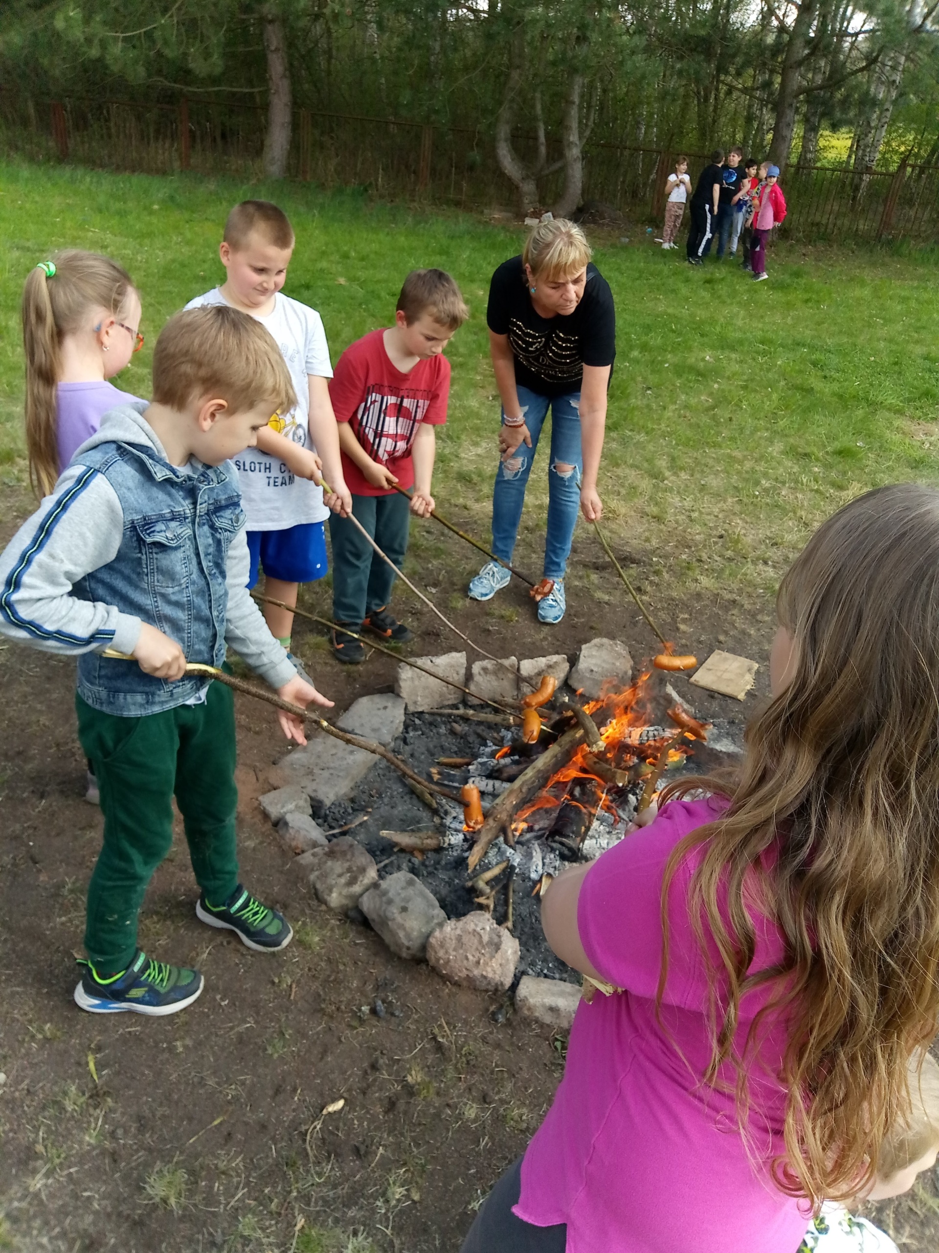 Protože pršelo, slavili jsme nakonec čarodějnice až v pondělí 2. května. Výhodou bylo, že všechny čarodějnice už odlétly a my se jich nemuseli bát :-). Všichni jsme se těšili na ohýnek za školou, ale buřtíka jsme si museli vysloužit splněním čtyř čarodějnických úkolů. A nechybělo ani koště!!! Pak už jsme jen trpěli vedrem u ohně, ale kdo by to nevydržel pro zlatého (nezdravého !) buřtíka.