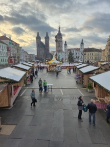 V pondělí 8. prosince jsme se rozhlíželi po okolí z vrcholu Bílé věže, která byla krásně vánočně vyzdobená. Poté jsme se vydali prohlédnout adventní trhy, betlém a stromeček na Velkém náměstí.